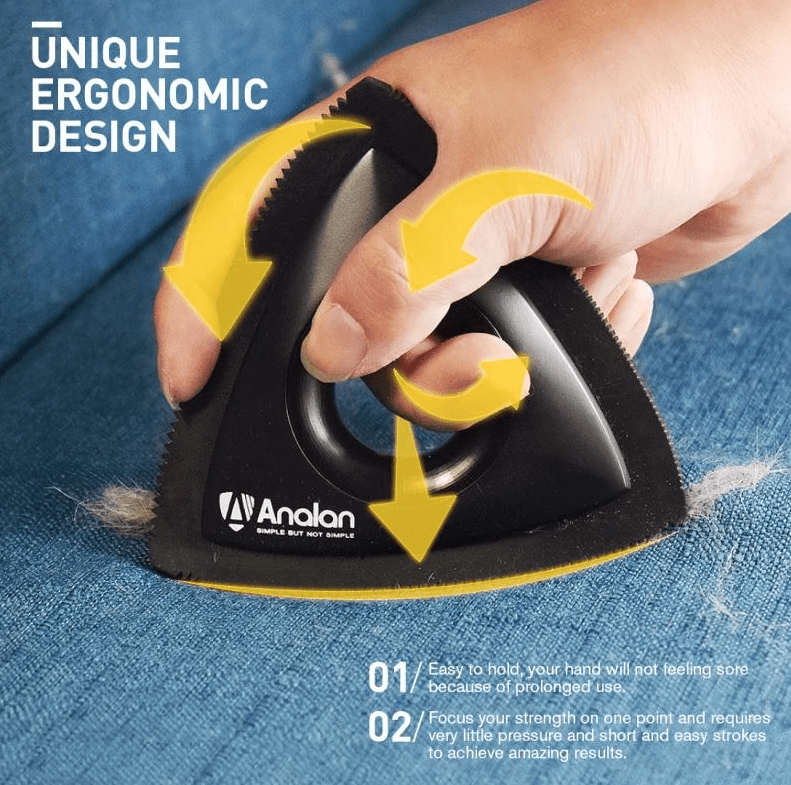 The ALANAN Pet Hair Detailer obliterates even the most stubborn hair from carpeting with its 3 sided multi-length toothed rubber edges.